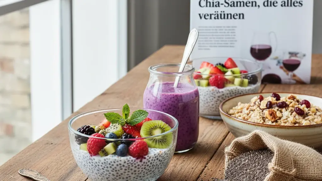 Die interessanteste kulinarische Eigenschaft von Chia ist die Fähigkeit, eine gallertartige Struktur zu bilden. Dieses Chia-Gel wurde zur Grundlage beliebter Pudding-Desserts, doch die Anwendungsmöglichkeiten reichen deutlich weiter. Manche Rezepte verwenden es als Ei-Ersatz beim Backen, es wird Breien als natürliches Verdickungsmittel zugesetzt oder bereichert kalte Getränke.