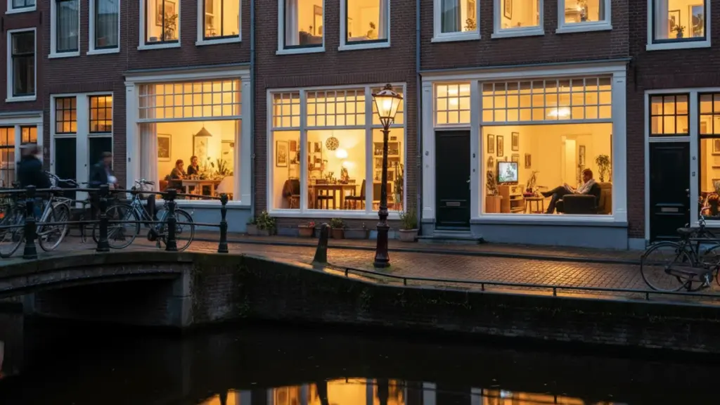 Wer jemals Amsterdam, Rotterdam oder Eindhoven besucht hat, dem ist vermutlich etwas Ungewöhnliches aufgefallen. Man schlendert abends durch die Stadt und kann direkt in jedes Wohnzimmer blicken. Keine Fensterläden, keine Rollläden, nicht einmal Vorhänge. Einfach nur nackte Fenster, durch die man beobachtet, wie die Bewohner zu Abend essen oder fernsehen.