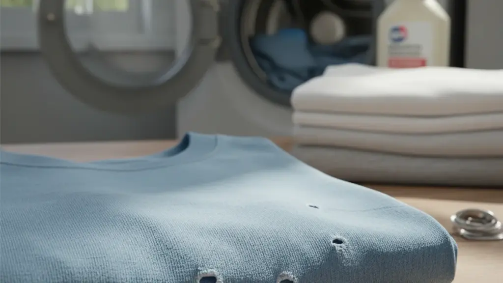 Kennen Sie dieses Gefühl? Sie holen frisch gewaschene T-Shirts aus der Maschine und entdecken plötzlich mysteriöse Miniatur-Löcher. Meistens tauchen sie an derselben Stelle auf – knapp oberhalb des Hosenbunds, auf der Vorderseite. Dabei war das Shirt vor wenigen Wochen noch völlig neu.