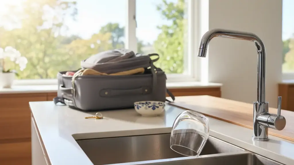 Neben dem Schutz der Abflüsse habe ich noch einige bewährte Gewohnheiten. Vor der Abreise kontrolliere ich immer, ob alle Wasserhähne geschlossen sind. Ich prüfe jeden Ventil gründlich nach.