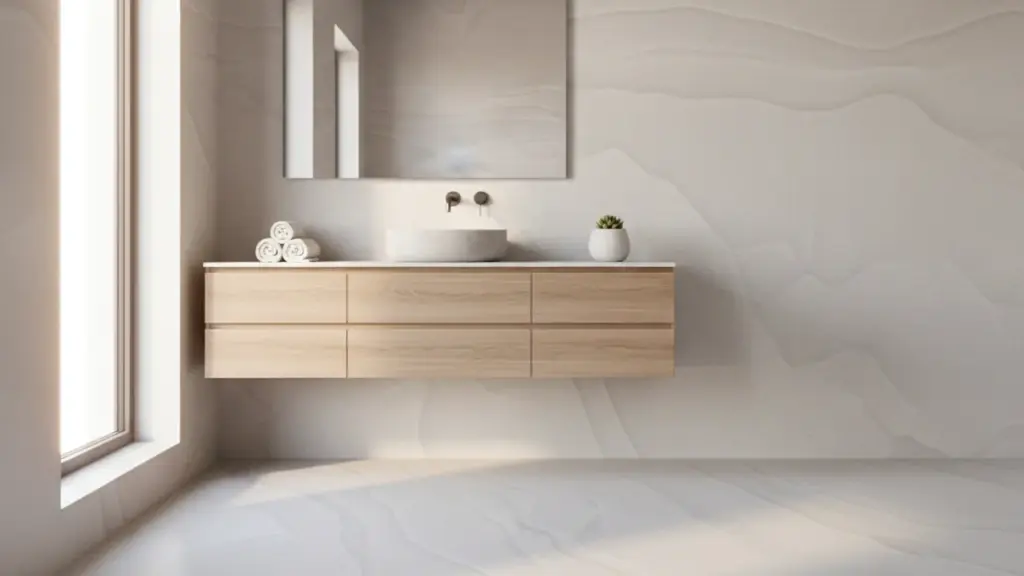 Das erste Licht des Tages fällt auf eine makellose, nahtlose Fläche im Bad, wo früher Fugen und Muster den Blick dominierten. Jetzt erscheint alles wie aus einem Guss — fast wie Wasser, das über ein steinernes Flussbett fließt. Kühl, glatt und ohne jede Unterbrechung. Etwas hat sich hier grundlegend verändert, mitten im Alltag, und viele bemerken es vielleicht nicht sofort.