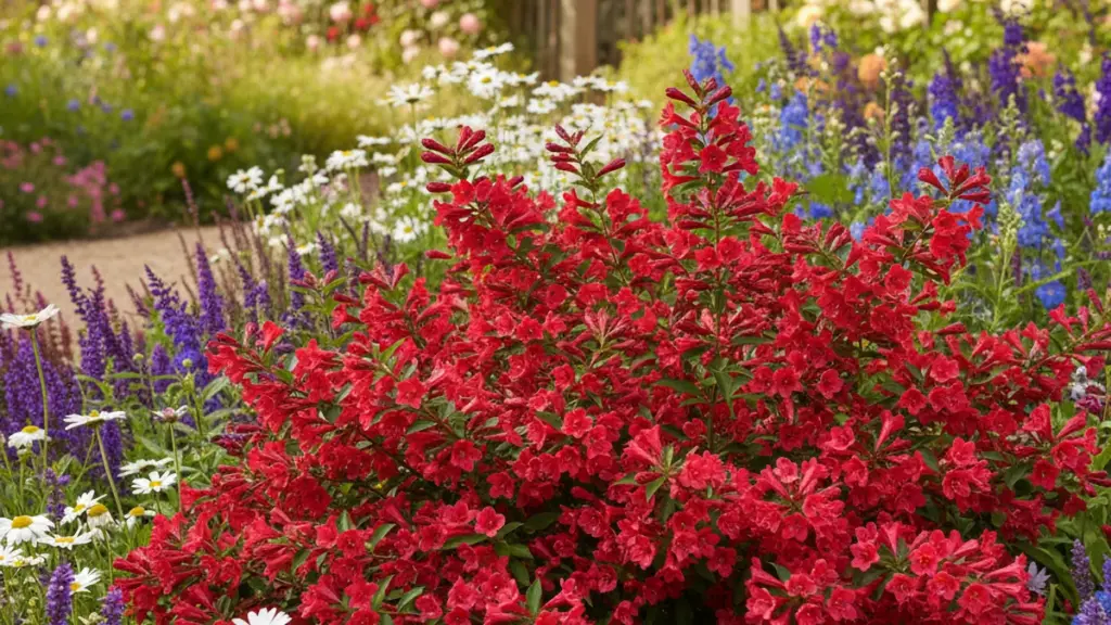 Diese Weigelie wird zu einem echten Blickfang auf deinem Grundstück. Sie wirkt spektakulär als Solitärpflanze auf grünem Rasen, als Grundlage für Hecken oder als leuchtender Akzent in gemischten Pflanzungen. Ihre tiefrot leuchtenden Blüten harmonieren wunderbar mit hellblättrigen Begleitpflanzen.