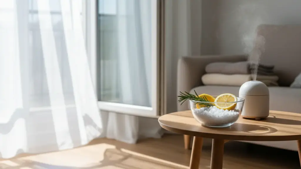 Natron, Essig und Kaffeesatz arbeiten auf drei verschiedenen Ebenen – Absorption, Neutralisierung und Reinigung. Jede Zutat hat ihre eigene Aufgabe, und gemeinsam verleihen sie dem Raum das Gefühl, als stünde das Fenster offen, selbst nach Tagen mit geschlossenen Vorhängen.