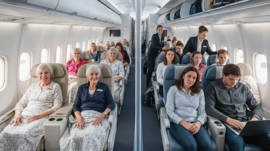 Die Wissenschaftler schlagen vor, die Sitzordnung in Passagierflugzeugen grundlegend zu revolutionieren: Fluggäste über 60 Jahre sollen künftig systematisch in separate Bereiche oder ganze „Seniorzonen“ geleitet werden. Viele ältere Menschen empfinden diesen Vorschlag als dreiste Altersdiskriminierung und sogar als demütigende Ausgrenzung.