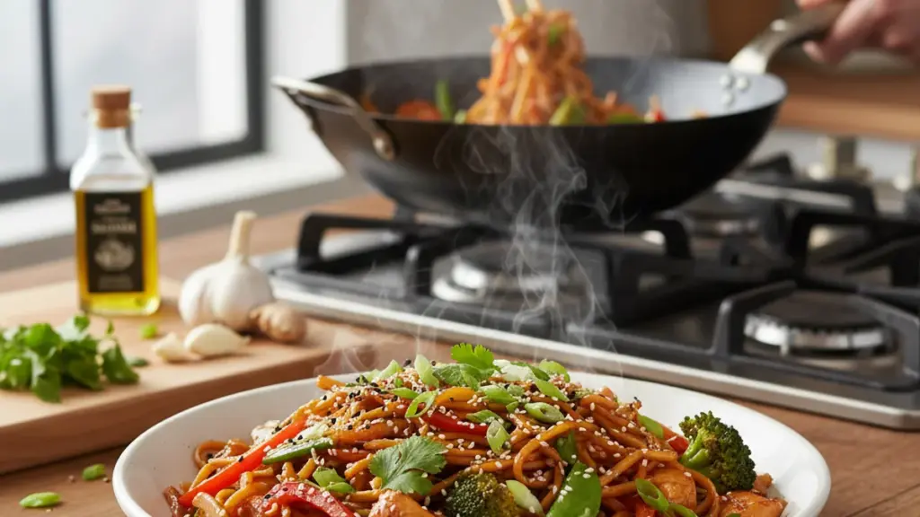 Die Kombination aus bekannten Zutaten und schnellen Handgriffen verwandelt einen gewöhnlichen Abend in ein kleines Festmahl, das sowohl praktisch als auch überraschend ist. So beweisen Wok-Gemüse und Nudeln, dass Restaurantqualität in greifbarer Nähe liegt. Zu Hause.