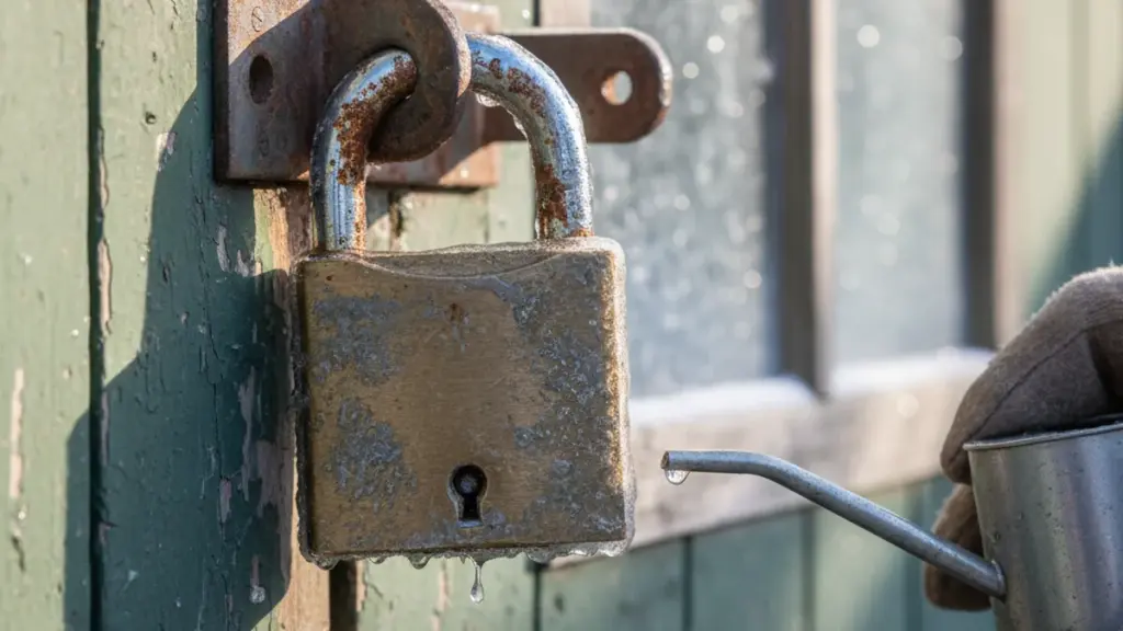 Jeder kennt diese frustrierende Situation: Nach einem langen, feuchten Winter greift man zum Vorhängeschloss der Gartenhütte, des Bootschuppens oder des Kellerverschlags. Der Schlüssel gleitet ins Schloss, doch das vertraute Klicken bleibt aus.