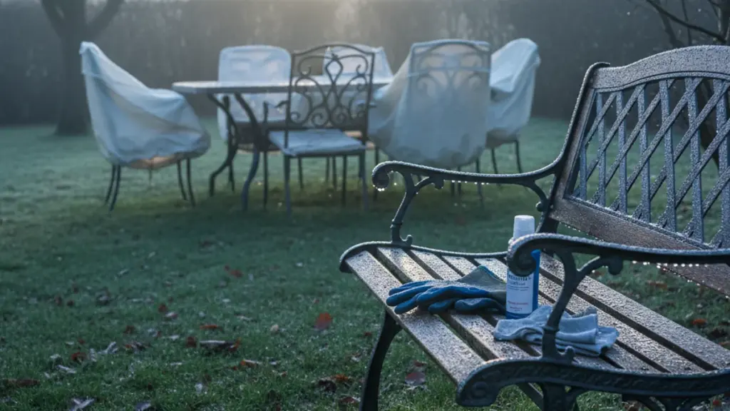Stellen Sie sich einen Garten vor, bedeckt mit nassem Gras, Regentropfen, die auf der Metallbank am Terrassenrand glitzern. Die Luft riecht nach kalter Erde und verrottetem Laub. Viele Menschen schleppen jetzt ihre Möbel hinein, frustriert über den feuchten Winter – doch eine einfache Routine für wenige Kronen kann dieses Jahr alles verändern, ohne dass Sie auch nur einen einzigen Stuhl bewegen oder Platz in einer überfüllten Garage finden müssen.