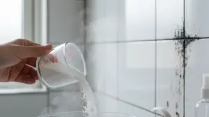 Obwohl das Gerät das Fach bei jedem Waschgang mit Wasser durchspült, sammeln sich auf der Plastikoberfläche und besonders an der Decke des Weichspülerfachs (Blumensymbol) im Laufe der Zeit dicker, schwarzer Schimmel und Waschmittelrückstände an. Dies liegt an der Feuchtigkeit, die nach dem Waschen in der dunklen Schublade vor sich hin gammelt.