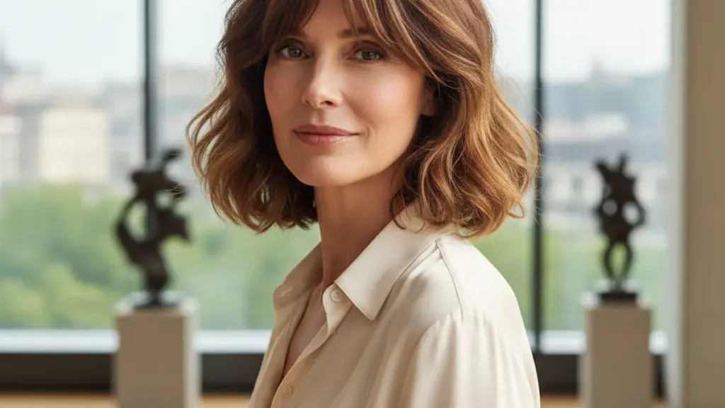 Dieser Schnitt erlaubt Variationen. Bei runderen Gesichtsformen helfen längere vordere Strähnen, das Gesicht zu strecken. Ist die Kieferpartie kantig, fügen zusätzliche Stufen Weichheit hinzu. Ovale Gesichter vertragen fast alles — selbst einen volleren Pony. Das Prinzip bleibt stets dasselbe: Umarme, wer du bist, aber schaffe Raum für frische Energie.