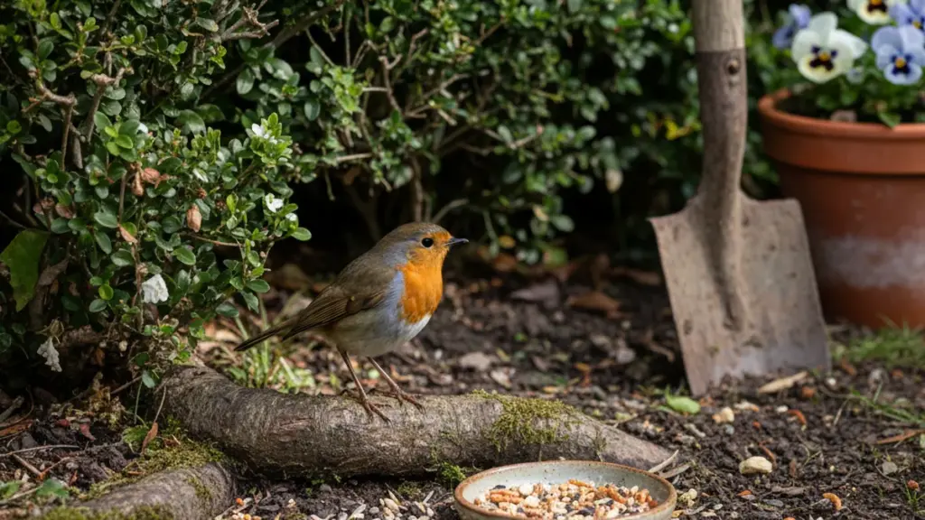 Das Rotkehlchen, wissenschaftlich Erithacus rubecula genannt, wirkt zutraulich und beinahe anhänglich. Es sitzt auf Spatenstielen, hüpft dem Gärtner hinterher und scheint „mithelfen“ zu wollen. Viele schließen daraus, dass ein Futterhäuschen mit Körnern ausreicht, um den Vogel in der Nähe zu halten. Das stimmt nur teilweise.