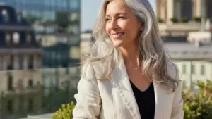 - Graues Haar: kann mit einer einheitlichen Nuance ruhiger und eleganter wirken, besonders bei den ersten vereinzelten grauen Haaren.