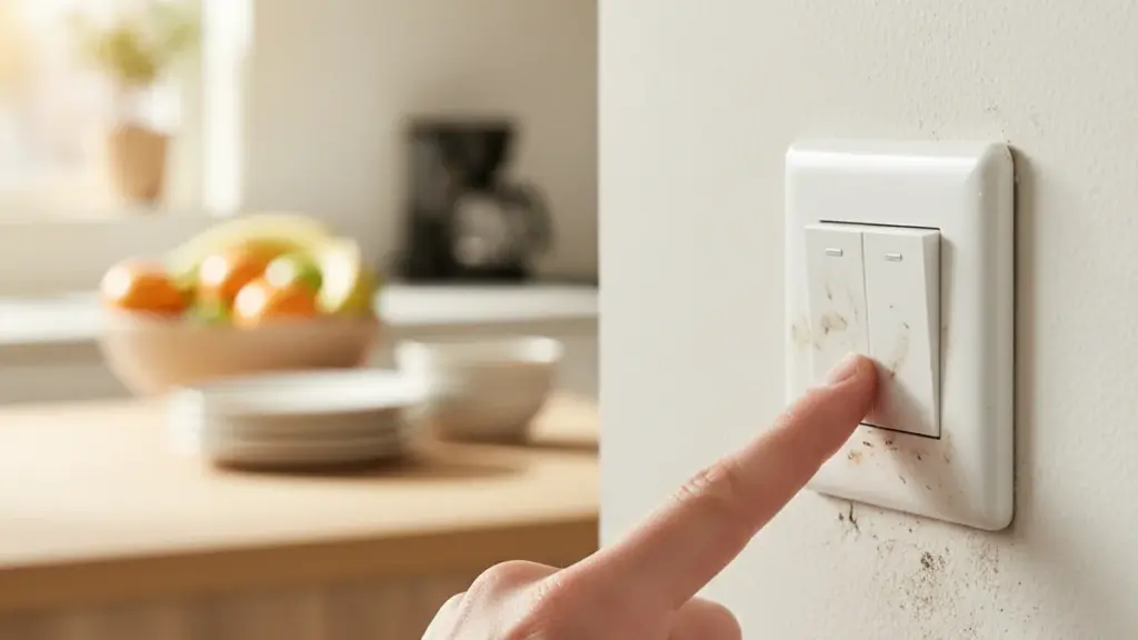 Untersuchungen zur Küchenhygiene zeigen, dass häufig berührte Flächen ebenso viele Bakterien enthalten können wie ein Schneidebrett für rohes Fleisch. Und der Lichtschalter gehört eindeutig zur Kategorie „wird oft berührt“ – in einem Familienhaushalt können es problemlos mehrere Dutzend Berührungen pro Tag sein.