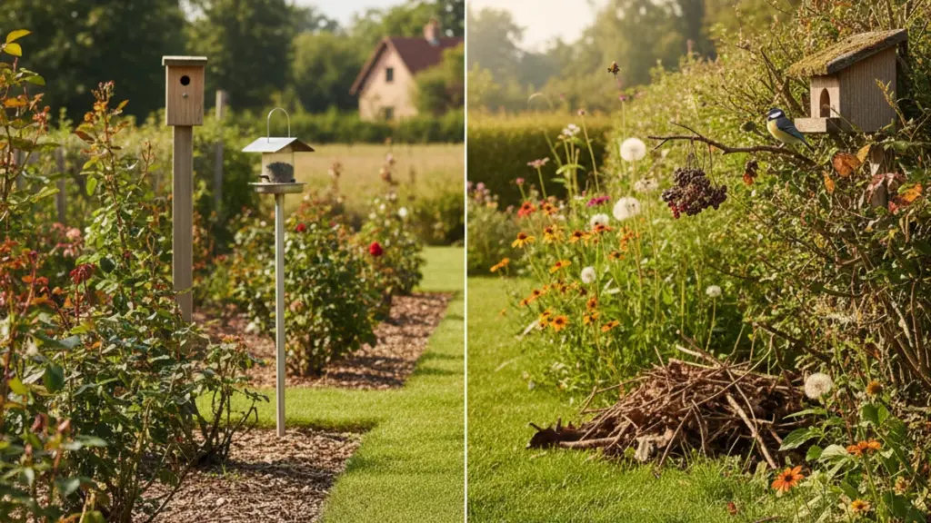 Natürliche Strukturen wie Totholz, alte Pfähle oder vertrocknete Äste bieten zusätzliche Spalten und Verstecke. Für Menschen mag das vielleicht „unordentlich“ aussehen, doch für Vögel ist es Gold wert.